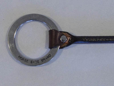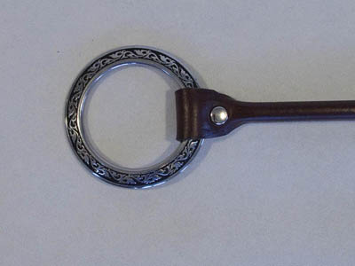 Attraktiver Taschengriff aus Leder mit verzierten Ringen aus Edelstahl setzt einen modischen Akzent.